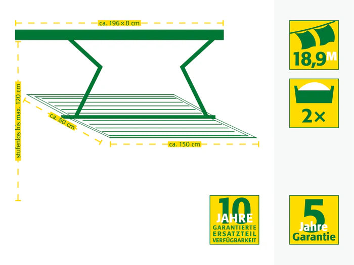 Drying surface about 4.92 × 2.59 ft